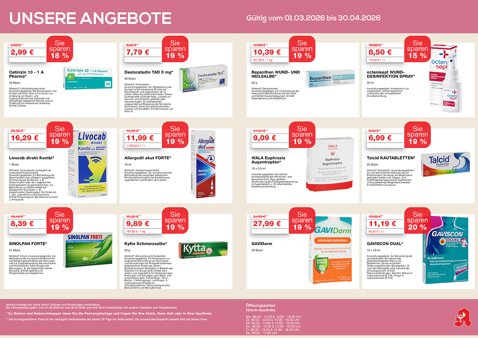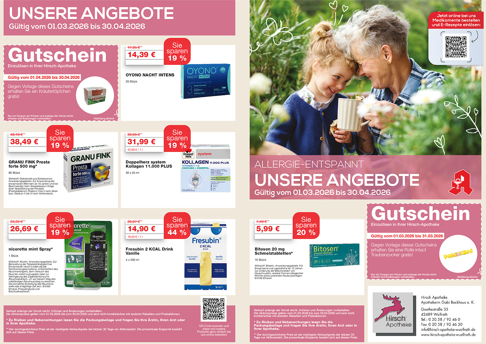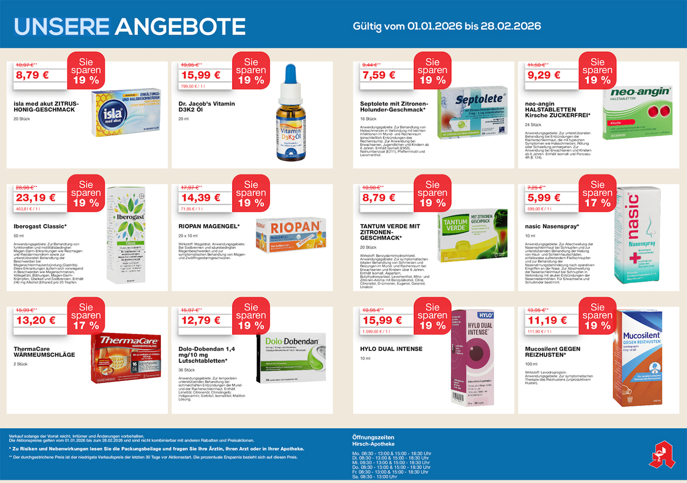 Hier finden Sie unsere Aktuellen Angebote aus unserer Apotheke.
